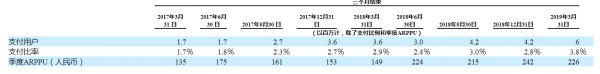 运营数据方面,斗鱼在招股书(F-1/A文件)中披露,截止到2019年一季度,其PC平台平均月活为1.10亿,移动平台平均月活为4910万,总体平均月活为1.59亿,与去年同期的1.27亿同比增长25.7%。季度平均ARRPU值为226元,较上年同期提升77元,用户平均付费率有3.8%,较上年同期提升0.9个百分点。斗鱼的三个月平均留存率为69%,单月留存78.6%。用户累计观看时长约为23亿小时,比上年同期增长43.8%;活跃用户日均观看时长约为2600万小时,比上年同期的1730万小时提高50.3%。