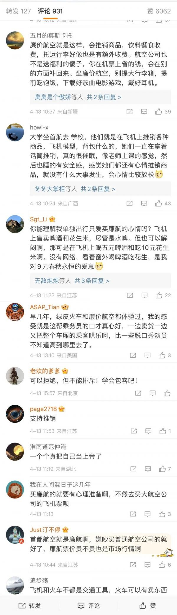 反观评论,几乎清一色得站首都航空,说明绝大部分旅客都理解差异化航空需要依靠机上销售维持运营,那我就更奇怪了,这事怎么就值得一个2.1亿阅读的热搜了呢?
