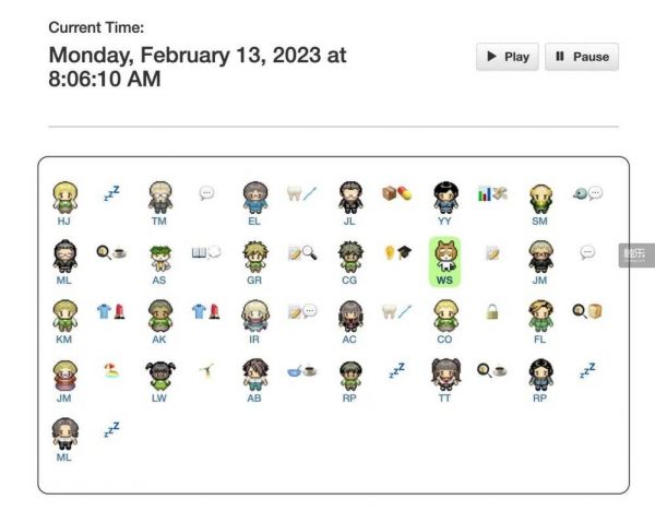 研究者会赋予每个NPC一个基础人设,他们的日常行为都围绕这个基础人设进行。比如Abigail Chen是一名艺术家,正在为一个动画项目工作,旨在激发低收入人群的创造力。所以,她除了花大量时间进行动画制作外,还会与擅长写作的另一位NPC讨论合作事宜,也会与其他NPC交流如何更有效地推广她的理念。除了基础人设外,这些对话和关系的构建均由NPC自主生成。
