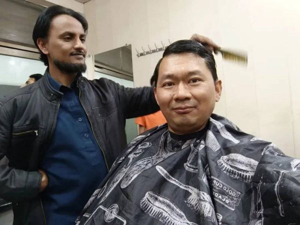2023年初,李硕在巴基斯坦当地理发店