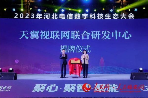 会议现场,天翼视联网联合研发中心正式揭牌,该中心由天翼数字生活科技有限公司与中国电信股份有限公司河北分公司共同成立,双方将发挥各自体系优势,进一步深化合作,构建以视联网为主的创新生态,共同推进视联网及其衍生产品研发及推广、协同形成创新示范标杆。