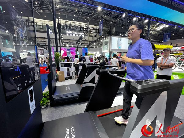 “我们这台跑步机不仅能改变在跑步机上跑步的枯燥感,还能纠正身体的姿势,改善跑步效果。”该展台负责人表示,通过科技与运动的结合,能够让消费者更方便、更直观地感受到科技魅力,树立良好的运动习惯。