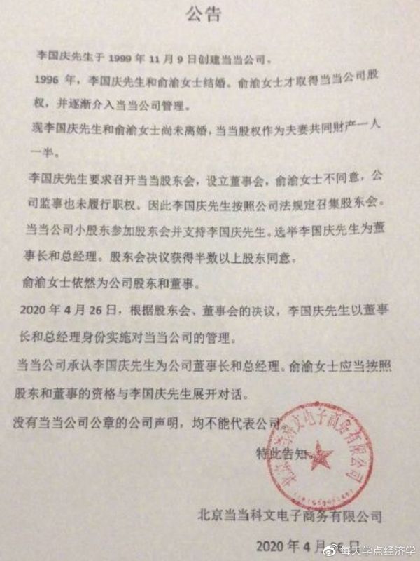人为财死,鸟为食亡,感情谈不下去了,那肯定要谈钱的,李国庆也不是圣人,这个想法很正常,俞渝不愿放手,想继续控制着当当,当然也有自己的考量,也就是说,这对夫妻俩各有各的理由,围观路人看戏就好。