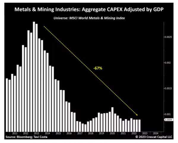所以你看到Newmont又提高了对于Newcrest的报价,还允许他们被收购前特别分红一次,Glencore提高了对于Teck的报价。本质上都是大家过去因为ESG和之前的债务伤害不勘探,然后现在手里一堆钱只能买公司。