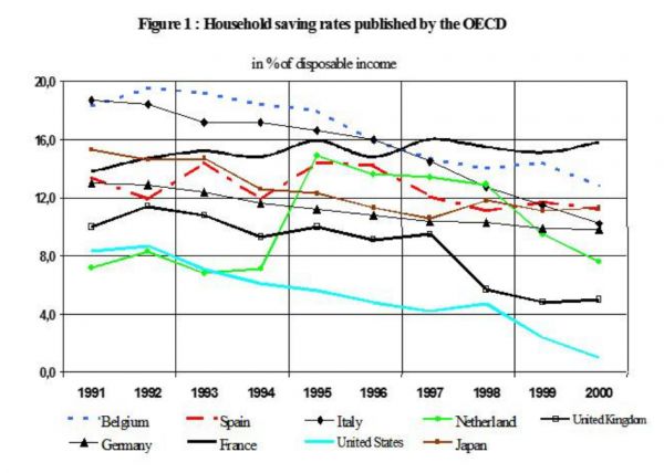 可以看到,整个90年代,美国的储蓄率从8%下降到了0,而现在呢?