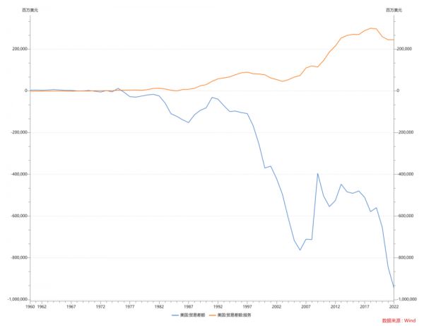 1990年代,美国的服务贸易和整体贸易差额还是OK的,现在就完全不是这个事情了。