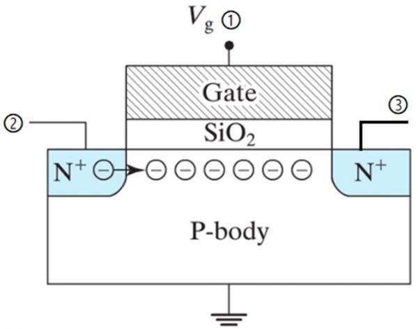 而MOS管的结构则是由金属栅极(Gate)、源极(Source)与漏极(Drain)组成。源极和漏极分别是两种不同参杂半导体组成,分别形成两个PN结。当向源极与漏极加电压时,在栅极无外加电场的情况下,电子由于PN结阻隔无法穿过中间的沟道,我们可以将这种状态定义为“0”。向栅极施加电场,衬底中的自由电子会被拉进沟道内,此时再向源极与漏极间加电压就能导通,我们MOS管的这种状态定义为“1”。有了0与1的信号,就可以构建更复杂的电路。而栅极通常用金属与氧化物组成,该结构也被称为金属氧化物半导体场效应管(metal-oxide semiconductor Field Effect Transistor,FET)。目前半导体主要使用MOS场效应管,即通常所称的MOS管,一般也能用晶体管指代它。