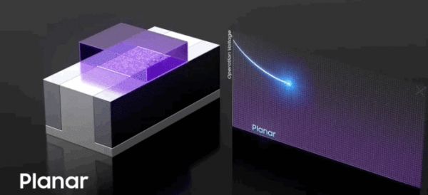 从图片中我们能看到,FinFET拥有更“窄”的沟道,但由于增大了鳍片与栅极的接触面积,使得晶体管对电子的控制能力增强,自然就减少了漏电的概率。