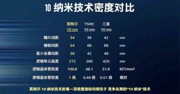 目前,英特尔芯片专家Mark Bohr提出的单位面积晶体管密度参数成为共识,它认为每个芯片制造商在提及工艺节点时,都应披露其逻辑晶体管密度,单位为MTr/mm2(每平方毫米数百万个晶体管)。因此,我们对比台积电7nm工艺与英特尔10nm工艺时,会发现它们的晶体管密度基本相同。