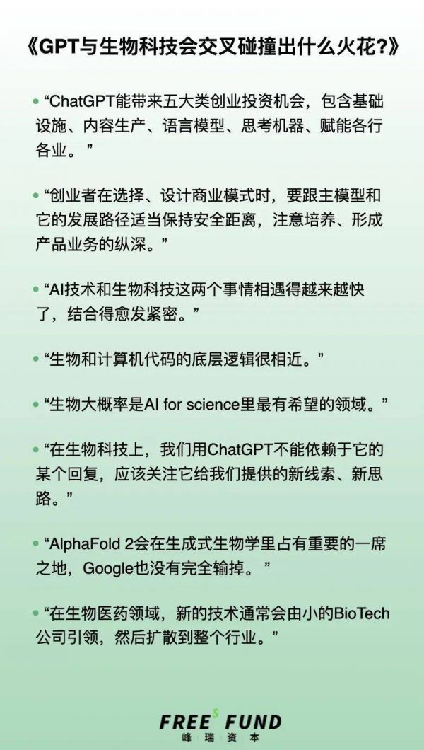 当然,一个新技术如果要用到严肃的医疗场景,肯定是需要经过全过程的研发和监管,要走完所有规定的流程,才能够真正地面对消费者或患者。所以除了内容上的不确定性,对我们来说,最重要的还是想一想,ChatGPT这样一个技术大突破可能会对生物学有哪些影响。
