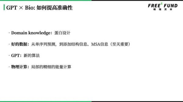 可能一开始是前沿的生物技术企业才能够做GPT和Bio结合的事情,现在全世界能做这样技术的公司或科学家也并不多,往后新技术可能会变成一个更主流的基础设施,辐射到整个行业。