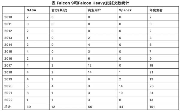关于发射市场,统计Falcon 9和Falcon Heavy发射次数如下。
