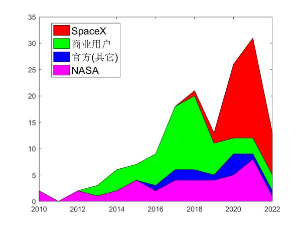 图 Falcon 9和Falcon Heavy历年发射次数统计