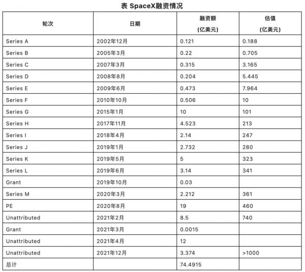 注:数据来源https://craft.co/spacex/funding-rounds