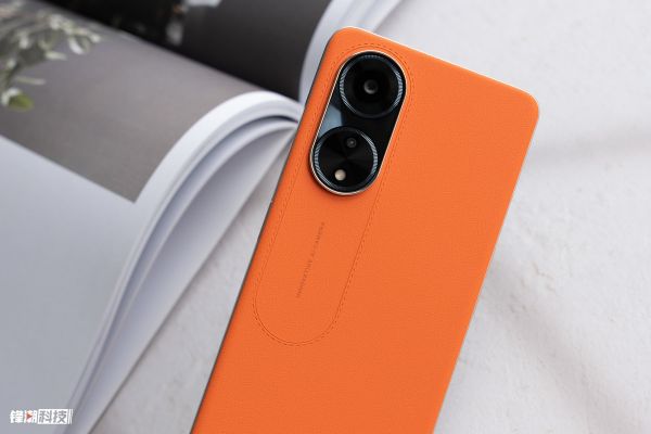 摄像头模组方面,OPPO A1 延续了 A 系列标志性双环设计,并将高端腕表的纹理融入到双环中。镜头模组的下方还有车缝线纹理,与「赤霞橙」配色相辅相成,展现出绝佳的商务感。