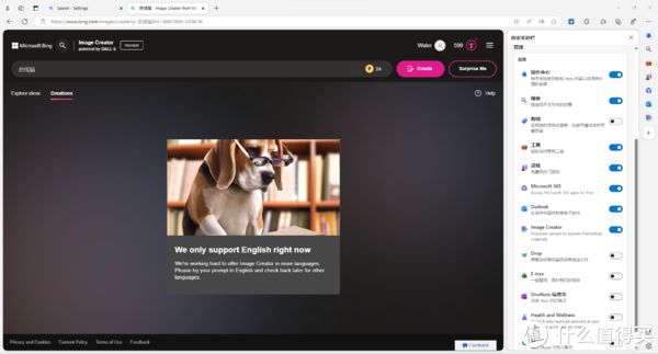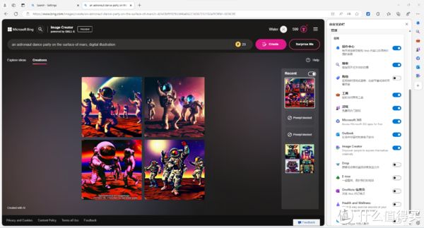 体验微软 Edge 浏览器侧边栏AI生图功能