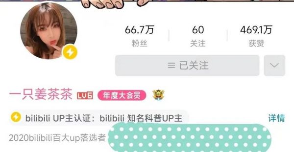 图/姜茶茶是B站认证的知名科普UP主(B站截图)