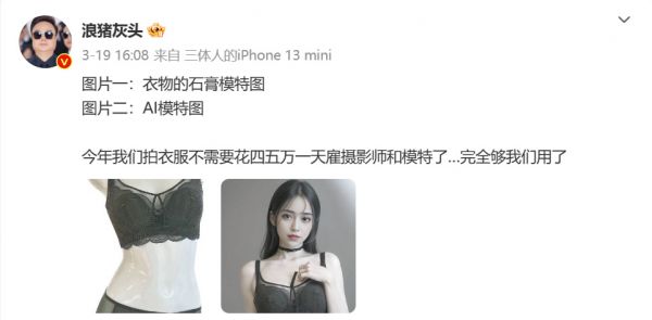 在微博,一位大牛发布了自己研究 AI 的成果,首先是 AI 模特与石膏模特的区别。