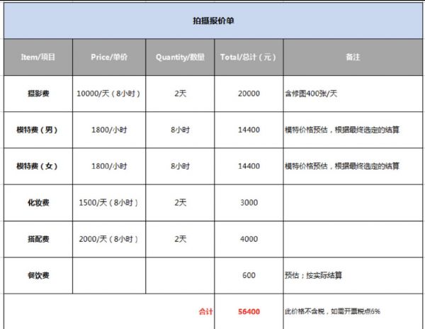 按照最初的报价,一天的拍摄杂七杂八下来都要 5.6 万一天,如果是大型专场活动,那么费用跟时间都得翻倍。