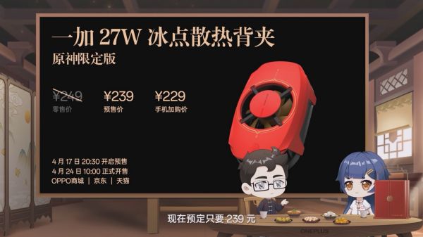 一同发布的还有也是原神定制版的27W散热背夹,首发价239元。