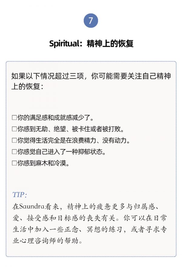 内科医生 Saundra Dalton-Smith 根据研究和临床经验,提出了 7 种类型的休息方式,帮助人们确定,你现在最需要的是哪一种。