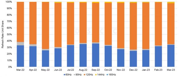 2022 年 3 月-2023 年 3 月,屏幕刷新率情况