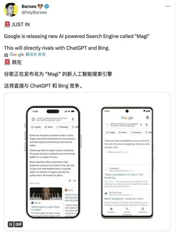 要说 Bard 更像是一个“仓促”的回应,是对外界展示 Google 并未在 AIGC 上落伍的话。你这个新搜索的 Magi 项目,可能才是 Google 面对 OpenAI 和微软的一次严肃反击。