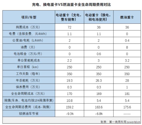 按照第一商用车网的数据,在5年的全生命周期,油价8元/升,单日里程250公里的假设条件下,充电重卡或者换电重卡的性价比已经优于燃油重卡。