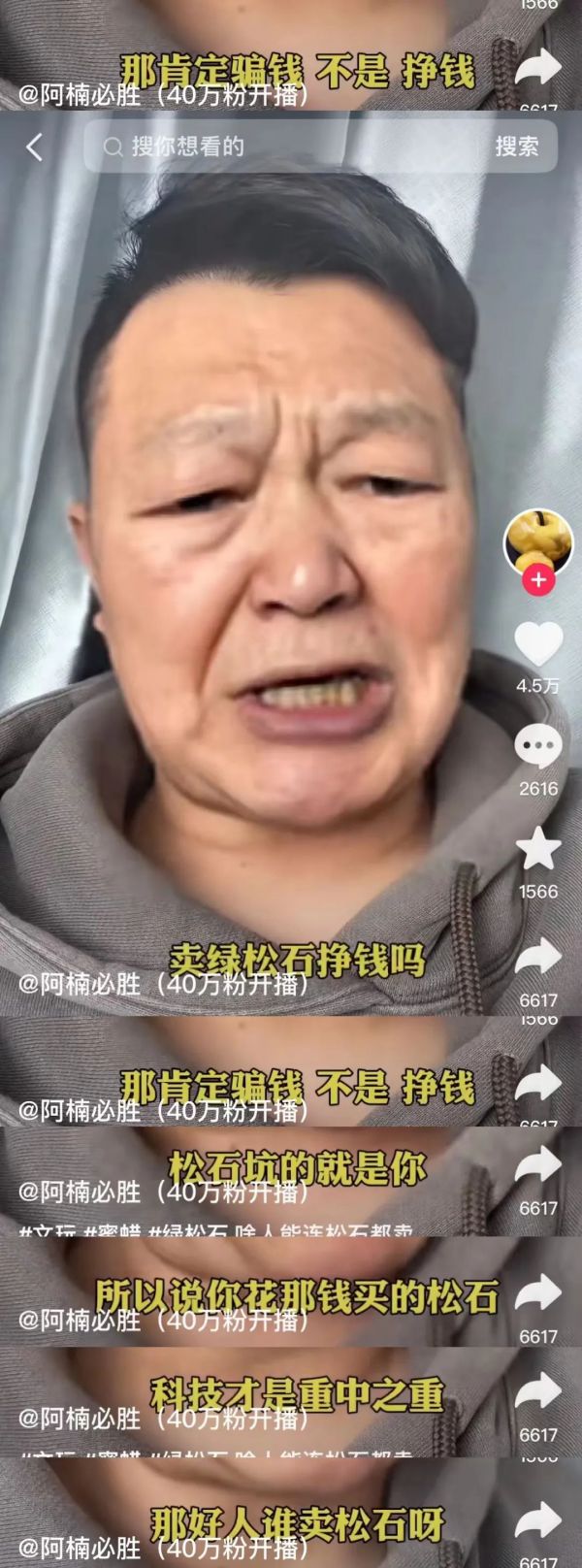公认的“水很深”的文玩行业也拥有自己的“辛吉飞”。“阿楠必胜”就是一个以揭秘文玩溢价为内容的博主,他调侃富豪排行榜不全面,少了文玩商的身影,还直接指出不少现在网络热捧的松石、核桃背后全是“科技”。