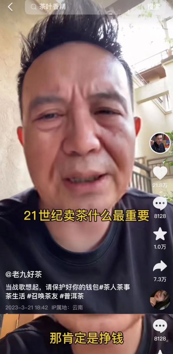但博主“老九好茶”却以从业几十年的经验告诉我们,所有的“文化底蕴”都是割韭菜的手段而已。他苦口婆心地劝告大家,30块钱的茶饼、800块钱的茶饼和8000块钱的茶饼其实成本都是25,甚至明确表示“卖茶叶什么最重要?当然是赚钱”。