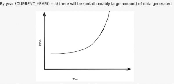 我们在谷歌使用这个幻灯片很多年了。当我转到 SingleStore 时,他们虽使用的是自己的版本,但有着相同的图表。我见过其他几个供应商也有类似的图表。这是“恐吓”幻灯片:大数据来了!你需要买我卖的东西!