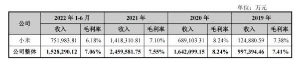 首先从平均毛利率来看,龙旗科技对小米方的毛利率只有 7.22%左右,不仅低于龙旗科技整体的 7.57%,更低于行业的 14%。