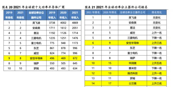 而闻泰科技收购的安世半导体,据 Omdia 数据,2021 年位居全球第八大功率半导体企业,第六大功率分立器件企业。