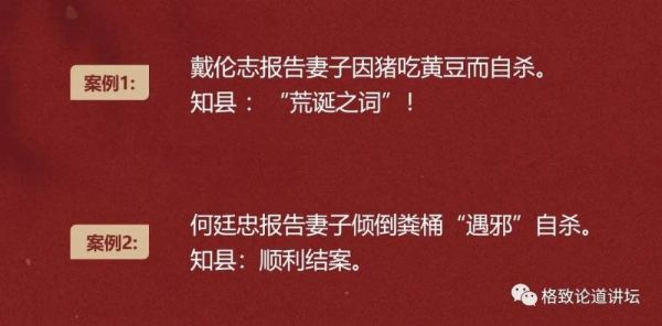 因为大家看这里的矛盾,什么公婆一言不和,丈夫半语不投或者和邻居发生了一点吵嚷等等。难道婆婆管教一下儿媳,丈夫管教一下妻子,不是应该的吗?怎么还能导致自杀呢?这不是对三从四德的儒家伦理准则的严重挑战吗?所以他才发这样的告示劝阻和禁止女性自杀。