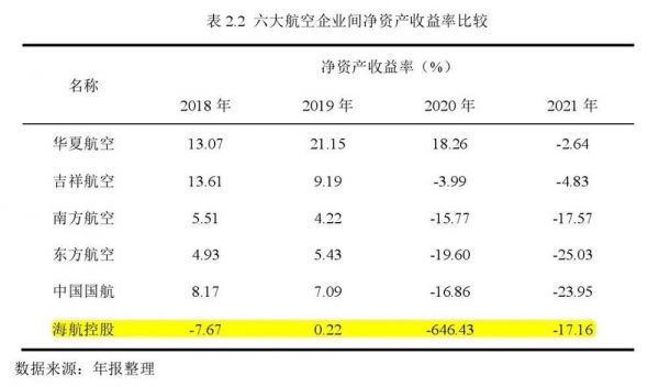 国内六大航司的净资产收益率都是负数。图/新冠疫情冲击下航空运输业财务绩效分析