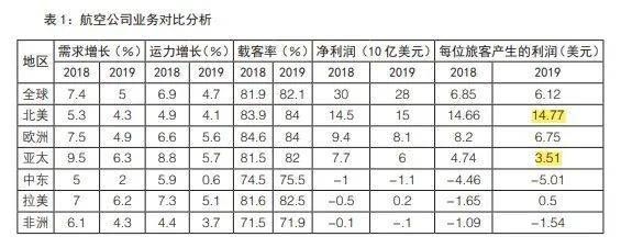 根据国际航空运输协会的分析,由于辅助营收的明显差距,2019年北美地区航司平均每位旅客产生的利润是亚太地区航司的4倍多。