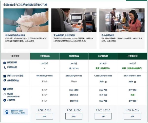 新加坡航空把经济舱细分成4种。图/新加坡航空官网