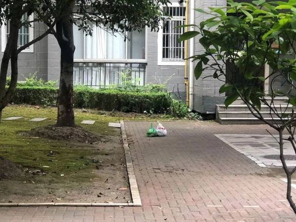 朵拉小区楼下试行之初被扔在地上的垃圾