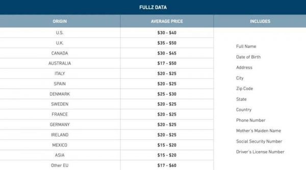 买卖还遵循“嫌贫爱富”的原则。通过地理位置、网购记录、银行账户等信息,可大致描绘出一个用户画像,其中越富裕的用户能够榨取的利益越多。根据安全公司 Armor 2019 年的黑市调查报告,美国地区的数据为 30-40 美元/人,意大利为 20-25 美元/人,而墨西哥仅为 15-20 美元/人。
