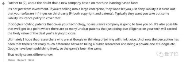也有Reddit网友DanielleMolloy说,我们应该考虑一下这些可能是预防性专利,实际上是用来从专利流氓手里保护研究成果的,即使不是谷歌的研究者也同样受益。