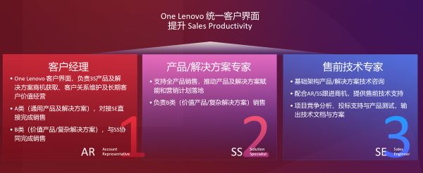图说:联想中国大客户群统一客户界面特别是在大客户业务群,已进一步整合完成七个行业纵队的组建,同时将大客户业务群、智能基础设施业务群及方案服务业务群“三军会师”后整编成客户经理(AR)、产品及解决方案专家(SS)和售前技术专家(SE)三个梯队。刘军希望在电信、金融、政府、制造、教育、互联网和重点行业这七大行业,为大客户客群精准提供新IT全栈全周期全程陪伴的方案能力。