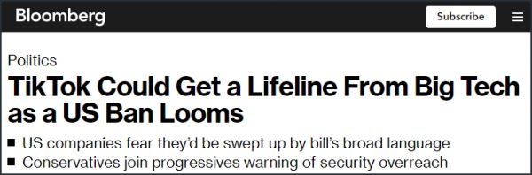 担心受牵连,美国科技巨头反对“TikTok禁令”法案