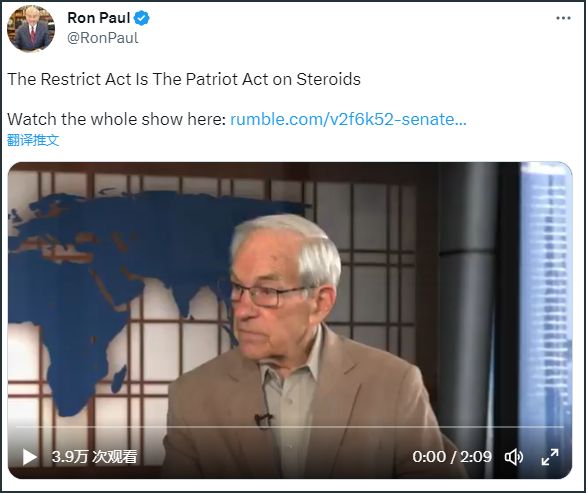 保罗推特截图网络自由非营利组织“电子前线基金会”(EFF)认为,该法案“将允许政府随意禁止来自外国的硬件或软件,且不需要做任何解释,几乎没有透明度,也没有提供足够的申诉或监督方式”。“美国公民自由联盟”(ACLU)称,该方案“将严重冲击美国的言论自由”。