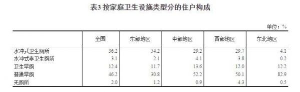 除了东部和东南沿海地区,以山西、安徽、江西、河南、湖北和湖南为代表的中部地区,其水冲式卫生厕所的普及率仅有29.2%,西部地区和西南地区的水冲式卫生厕所和中部地区不相伯仲,普及率为29.7%。