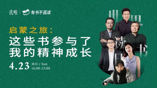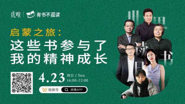 因为读书还有那么多的好处。所以,今年世界读书日,虎嗅《有书不孤读》栏目将举办一场以“启蒙之旅:这些书参与了我的精神成长”为主题的读书直播——我们将邀请5位不同年龄、不同性别、不同阶层的嘉宾,各自回到一个对他本人成长有过帮助的 “启蒙地”,聊聊各自版本的 “读书改变命运”的故事。