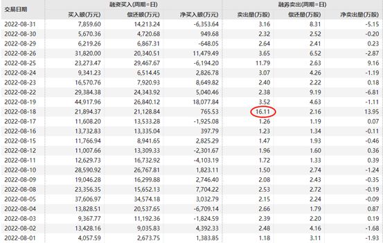 长春高新2022年8月的融资融券数据(数据来源:Wind)