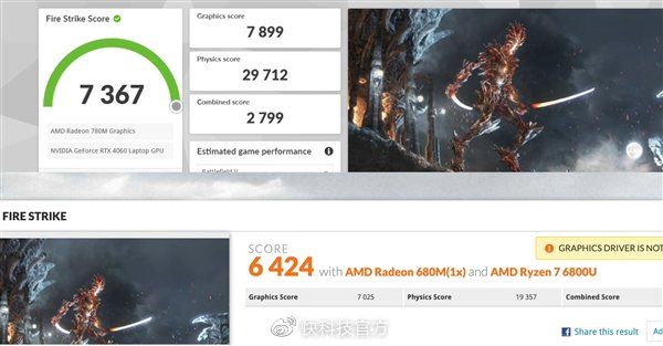 3DMark基准测试,Fire Strike、Time Spy跑分对比上代Radeon 680M分别提升了大约12%、15%。