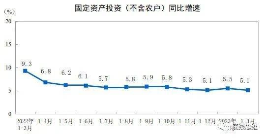我们的固定资产投资增幅是在持续下滑的。一季度的固定资产投资增幅只有5.1%,远不如2022年同期。政府的基础设施建设投资增长只有8.8%,况且基础设施的投资事关百姓长期福祉,不可能马上产生收入增长。真正能够扩大就业提高老百姓收入增长的投资,是民间投资,但是一季度我们的民间投资增幅只有0.6%。