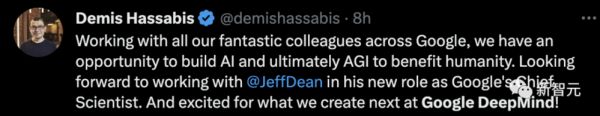 从Hassabis的官宣推文中可以看到,他对领导团队最终迈向AGI,造福人类的使命上大有干劲儿。
