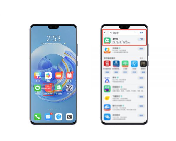 华为手机用户可以直接在手机自带的华为应用商店内,搜索出境易下载安装即可,其他用户也可在出境易官网进行下载。